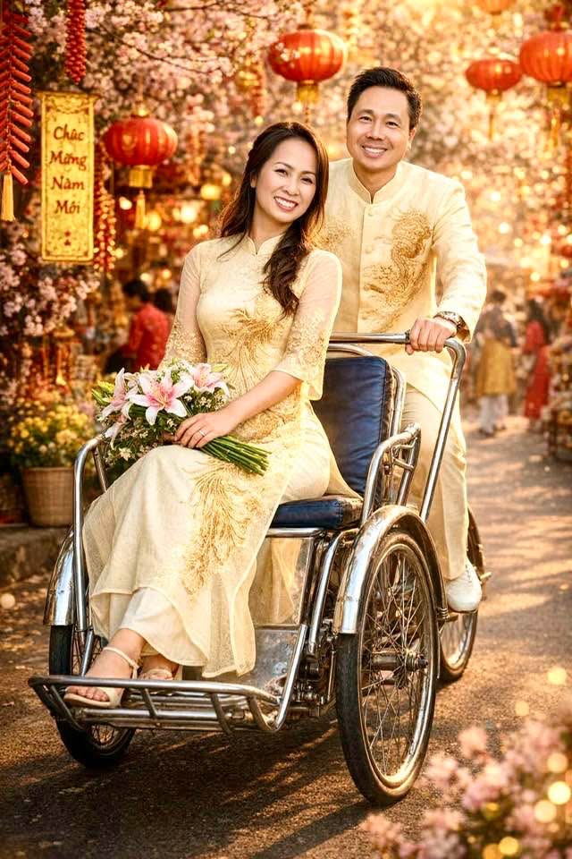 Phần tôi, mong manh trong tà áo dài tứ thân mới may, tôi run lên vì lạnh, nhưng cái lạnh cũng không làm chùn bước chân tôi, tôi lang thang dạo khắp quanh khu phố chợ, mắt không ngừng ngắm nhìn những cửa hàng nho nhỏ xinh xắn, chiêm ngưỡng vẻ đẹp của những gian hàng hoa quả, bánh trái. Và sau hết, tôi cũng không quên dừng bước bên một chiếc xe hoa hay quán chợ để tự chụp cho mình vài “pô” hình làm kỷ niệm.