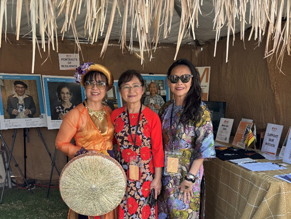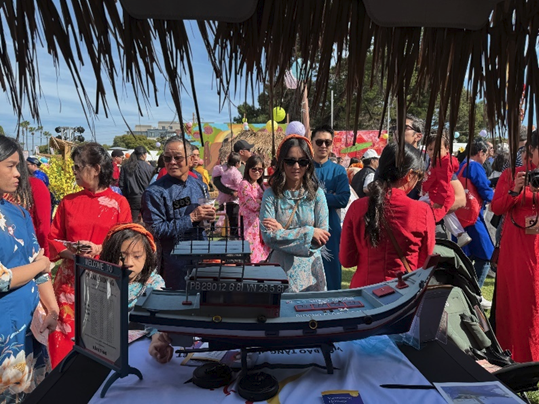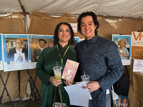 Hôm ấy tôi vui quá vì gặp được một số giáo sư và các anh chị trong Câu Lộc Bộ Hùng Sử Việt, Viện Bảo Tàng Di Sản Người Việt (Vietnamese Heritage Museum/VHM), Viện Việt Học (VVH), Trường Việt Ngữ, v.v…Tất cả đều có một gian hàng nhò trong hội chợ. Viện Việt Học với cái tên thật hay: Quán Thơ, nơi mọi người có thể ghé thăm và góp ý thơ, làm thơ hay tranh luận các thể thơ. Trường Việt Ngữ thì tổ chức chương trình đố vui có thưởng trong khi Viện Bảo Tàng Di Sản Người Việt triển lãm những hình ảnh về nhân chứng sống trong tù cải tạo và nạn nhân vượt biên (boat people).