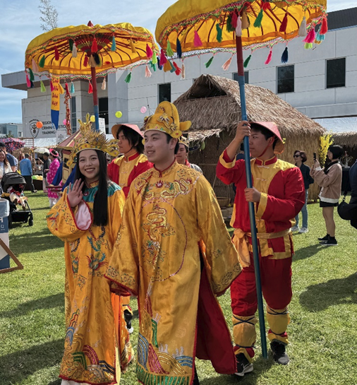 Theo truyền thống của phong tục Việt Nam, năm nào tôi cũng thấy các em sinh viên tổ chức diễn hành với kiệu rước và các em sinh viên trong vai Vua & Hoàng Hậu du hành qua các gian hàng.