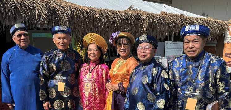 Khánh Lan chụp hình cùng các bậc trưởng thượng của Câu Lộc Bộ Hùng Sử Việt