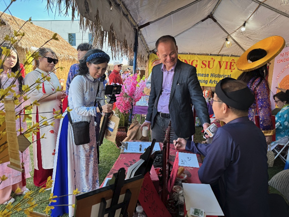 Tờ tường trình của ký giả Trà Nhiên của tòa báo Người Việt ghi nhận: “Trong tiếng pháo rền vang đỏ rực báo hiệu giờ khai Xuân, nhật báo Người Việt, Westminster, tưng bừng tổ chức lễ mừng Tân Niên Tết Bính Ngọ, sáng Thứ Ba, 17 Tháng Hai, nhằm Mùng Một Tết, quy tụ đông đảo nhân viên, thân hữu, và dân cử đến chung vui với tờ báo tiếng Việt lớn nhất hải ngoại. Phòng sinh hoạt nhật báo Người Việt rạng rỡ với với các tiểu cảnh trang trí đầy sắc Xuân và hương vị Tết cùng hàng trăm lồng đèn sặc sỡ sắc màu. Tiếp theo là nghi thức thắp hương đầu Xuân, từ trái, Nghị Viên Cindy Ngọc Trần, Nghị Viên Ted Bùi, bà Hoàng Vĩnh, Giám Sát Viên Janet Nguyễn, và Thị Trưởng Stephanie Klopfenstein.”