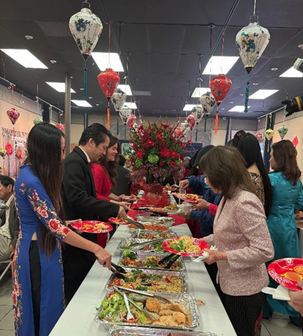 Đến dự tiệc tại hội trường báo Người Việt, năm nào tôi cũng gặp được nhiều khuôn mặt thân thương, quen thuộc như GS Quyên Di, GS Huê & Thầy Long, Cô Hoàng Vĩnh, Chú Hùng, ký giả Văn Lang, Cô Thanh Thảo, Chị Hồng Tước, Chị Minh Phú, Chị Janet, Chị Tương Vi, Chị Ánh Tuyết và nhiều anh chị khác…
