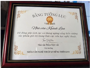 Sau đó, bằng tưởng lục đóng góp về văn học nghệt thuật do Ban Sáng Lập và điều hành của hai tổ chức Liên nhóm Văn Chương Việt & Tiếng Đàn Xưa và Liên nhóm Nhân Văn Nghệ Thuật & Tiếng Thời Gian cấp phát ghi nhận những thành quả về phạm trù chuyên môn của 3 hội viên trên.