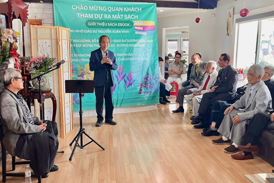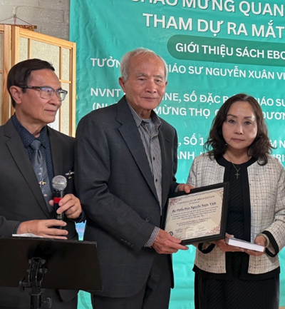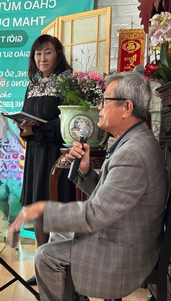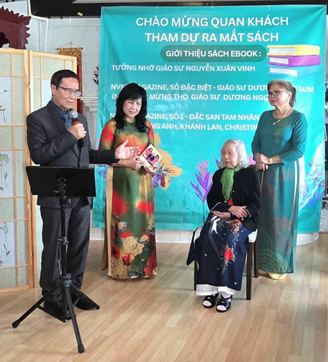 GS NV Quyên Di đại diện cho hai Liên Nhóm NVNT & TTG và VCV & TDX giới thiệu ba tam nhân tiêu biểu cho 3 lãnh vực: Thi ca NS Duong Hồng Anh, Âm nhạc CNS Lâm Dung và Văn thơ VTS Khánh Lan. Đồng thời giới thiệu nội dung của NVNT MAGAZINE, số 1.