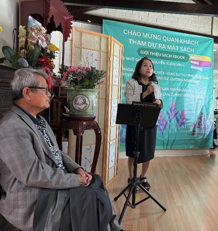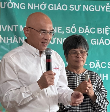 Tiếp lời của GS Quyên Di, Madame Phiến Đan cũng đã chia sẻ những kỷ niệm mà bà đã có được với GS KHG Nguyễn Xuân Vinh trong suốt 17 năm sống bên ông. Cũng như NV Quyên Di, bà nhấn mạnh về đức tính khiêm nhường và “nghe nhiều, it nói” của GS Vinh.
