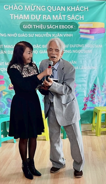 Sau khi cô Dương Quỳnh Như và cựu học sinh Petrus Ký Đặng Quý Mão kể những kỷ niệm với thầy Dương Ngọc Sum, sách vở mới về GS. Dương Ngọc Sum được phát ra cho mọi người. MC Mộng Thủy cũng không quên vinh danh những mạnh thường quân đã biếu tặng phong bì mừng GS Sum trong ngày sinh nhật và RMS của Thày. (TS Đình Duy Phương, chủ tịch và TS TS Võ Ngọc Hoa, thủ quỹ hội Văn Bút VN Hải Ngoại vùng Tâ Nam Hoa Kỳ; NS Lê Nguyễn Nga, NVNT & TTG)