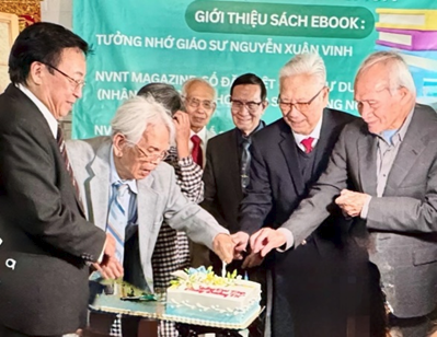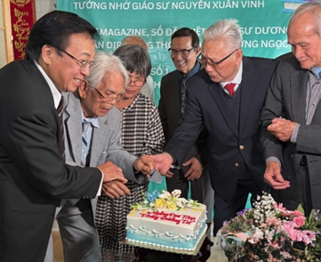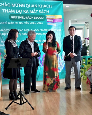 GS Quyên Di đại diện hai liên nhóm mở đầu Phần tưởng niệm GS KHG Nguyễn Xuân Vinh, ông nói về lý do vì sao lại có ngày tưởng niệm GS Vinh. Sau đó, NV Việt Hải nói ngắn gọn lòng kính phục và quý mến của ông đối với GS Vinh khi GS Vinh con sinh thời và sự nuối tiếc một KHG vĩ đại của thế giới. Tiếp theo, NV Việt Hai trao tặng sách tưởng niệm GS Nguyễn Xuân Vinh do Liên Nhóm NVNT & TTG thực hiện.