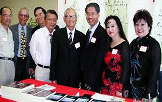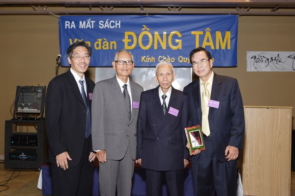 From left: VHLA, Doãn Quốc Sỹ, Trần Thanh Hiệp, Tạ Xuân Thạc kỷ niệm RMS Văn Đàn Đồng Tâm họp Hội ngộ tại Houston, , Hè tháng 7, 2006.