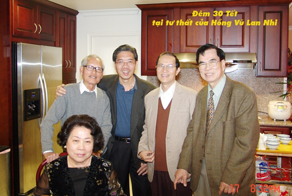 Tết Hội Ngộ Đinh Hôi Âm Lịch Xuân 2007 từ trái: GS. Doãn Quốc Sỹ, VHLA, GS Quyên Di, NV Tạ Xuân Thạc, và madam Tạ Xuân Thạc (bà Kim Anh Houston). Photo kỷ niệm do NV Vương Trùng Dương chụp.