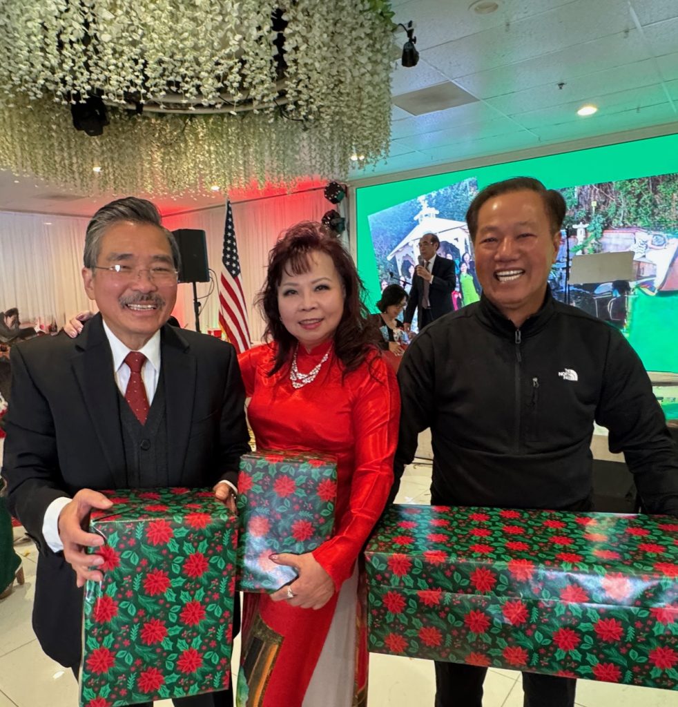 Ngay từ những giây phút đầu tiên của buổi tiệc, không gian đã tràn ngập sắc màu tưng bừng của Giáng Sinh lan tỏa trên nét mặt hân hoan của mọi người. Chương trình tiệc mừng Giáng Sinh 2025 của nhóm Nhân Văn Nghệ Thuật và Tiếng Thời Gian được khai mạc bằng những lời chào mừng nồng nhiệt, tiếp theo là phần nghi thức chào cờ Việt Nam Cộng Hòa và Hoa Kỳ, cùng một phút mặc niệm để tưởng nhớ những chiến sĩ đã hy sinh trên chiến trường để bảo vệ đất nước và các nạn nhân đã bỏ mạng trên đường đi tìm tự do.