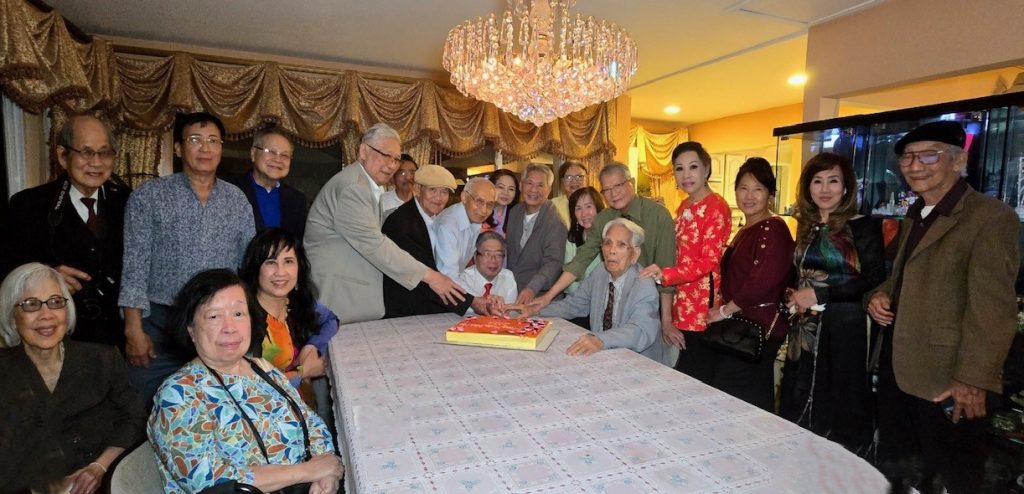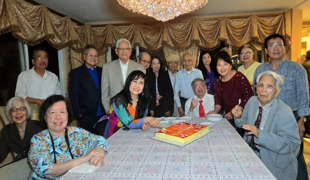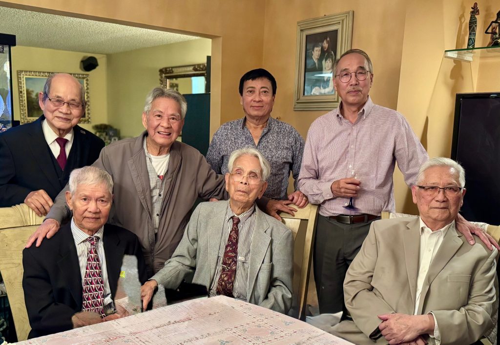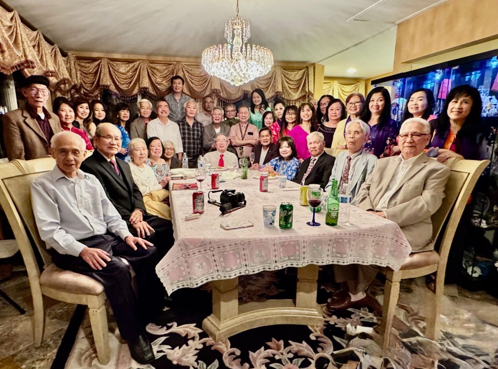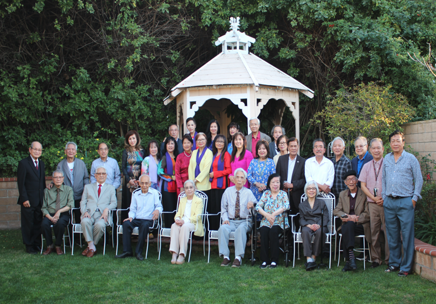 Hàng đứng, từ trái sang phải: NS Võ Tá Hân, phu quân của chị Bình Chi, Anh Peter Thạnh Nguyễn, TS Huy Anh, KQ Vũ Hòa (Phu quân Ngọc Quỳnh), HS Hoàng Vinh, NV Phạm Gia Đại, KQ Dương Viết Đang, KS Lâm Quốc Dân, Michael (Phu quân Thụy Lan), KG NV Vương Trùng Dương, Cô của NV Ngọc Cường, KG NV Phạm Quốc Bảo, NV Vi Khiêm, KS Trần Mạnh Chi. Hàng ngồi, từ trái sang phải: Mạnh Bổng, NV Nguyễn Quang, GS Trần Huy Bích, NV Ngọc Cường, GS Dương Ngọc Sum, NS Lê Nguyễn Nga, TS Ngọc Hoa, TS Quỳnh Giao.