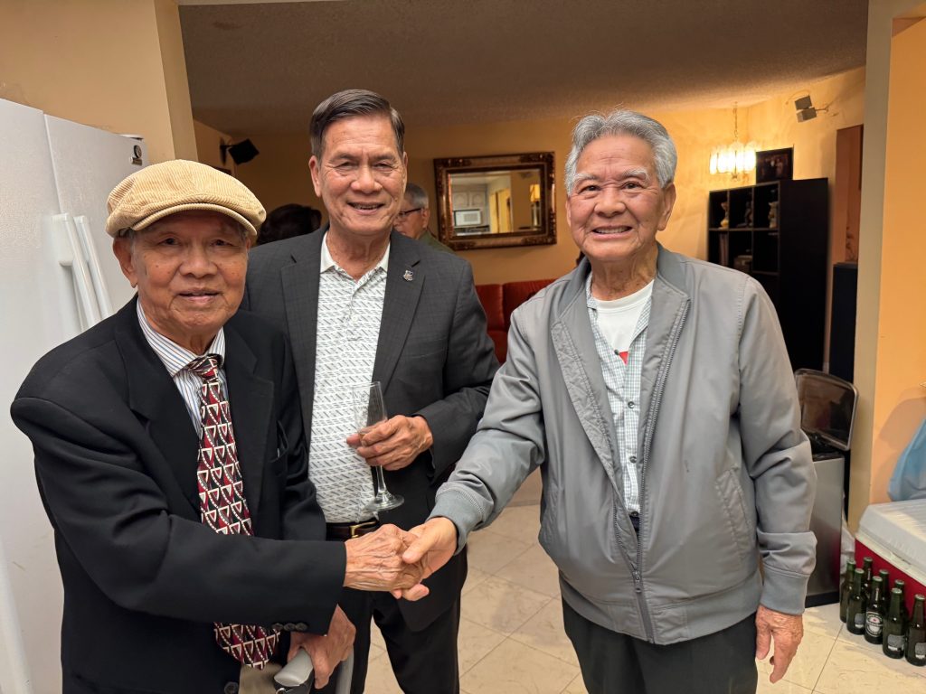 Những cái “hug” thân tình, những “hand shake” xiết chặt của bao ngày xa cách của ba anh cựu SVSQDL Phạm Quốc Bảo, Vương Trùng Dương, Dương Viết Điền đã gây bao xúc động trong lòng chúng tôi.