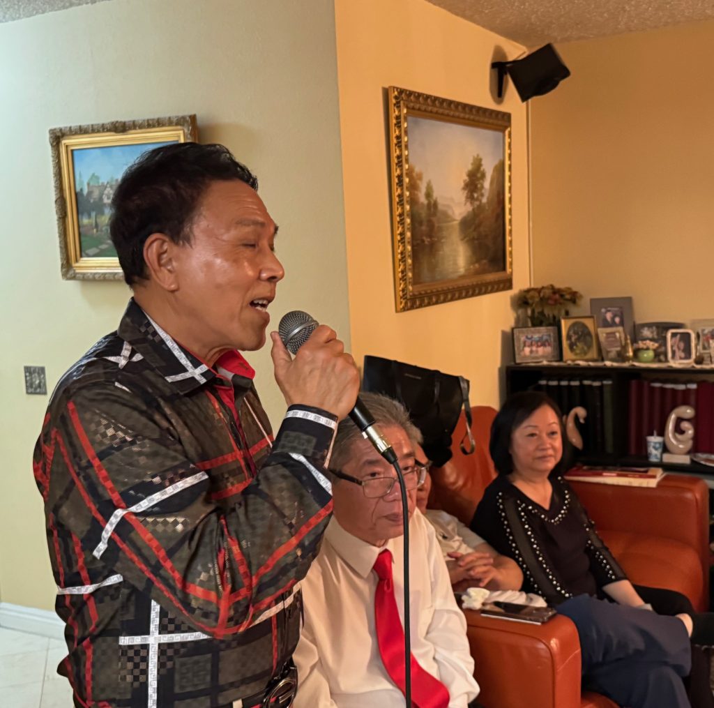 Kỹ sư Trần Mạnh Chi lãnh nhiệm vụ nặng nề nhất là đã có công “vác” dàn máy karaoke đến để mọi người ca hát cho vui. (và quý nhất là save $250 cho gia chủ, cảm ơn anh Chi, hihihi…)